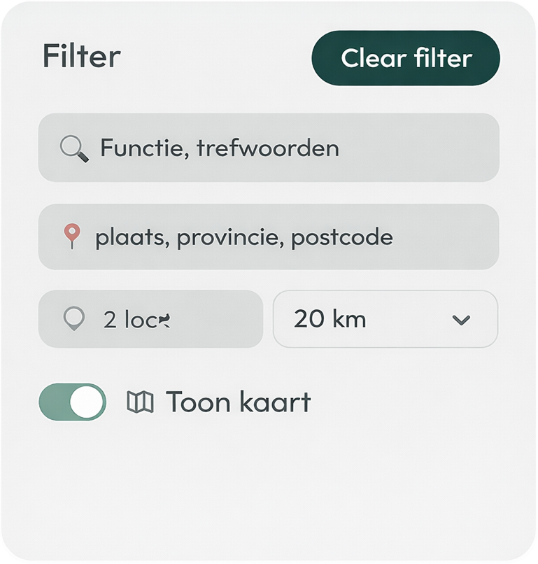 Volledige design vrijheid gekoppeld aan jouw ATS, met slimme filters, kaart en automatische google jobs publicatie.